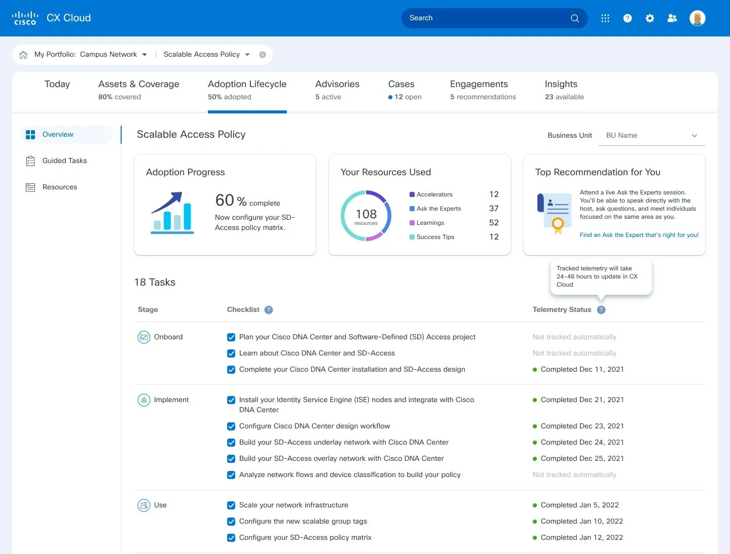 Lifecycle Adoption Redesign for Cisco CX Cloud